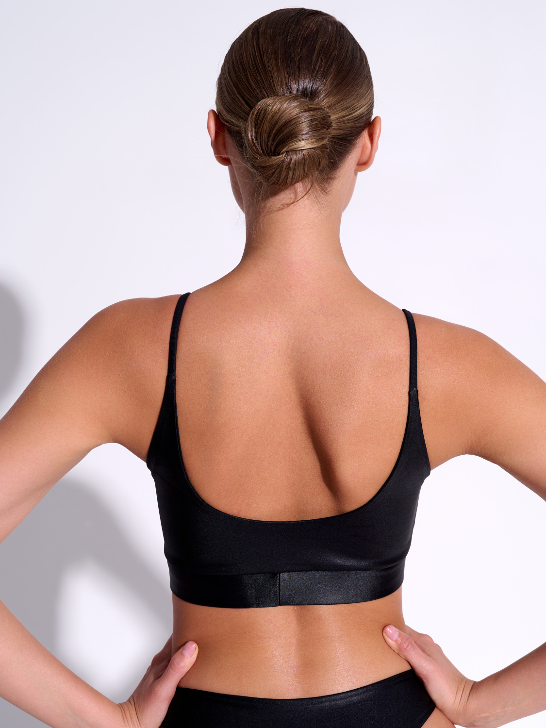 Топ двухслойный, с мягкими резинками в швах. Это обеспечивает дополнительную поддержку для груди и позволяет ему держать форму при намокании и не деформироваться после долгой носки и стирки.