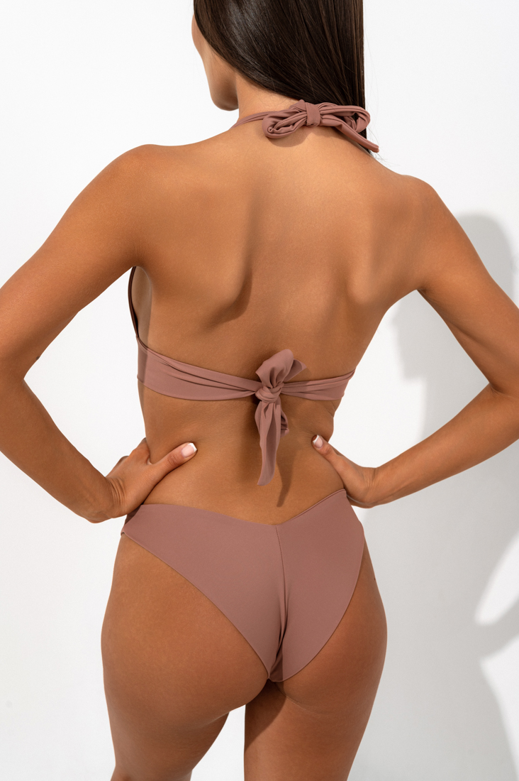Топ двухслойный, с мягкими резинками в швах. Это обеспечивает дополнительную поддержку для груди и позволяет ему держать форму при намокании и не деформироваться после долгой носки и стирки.