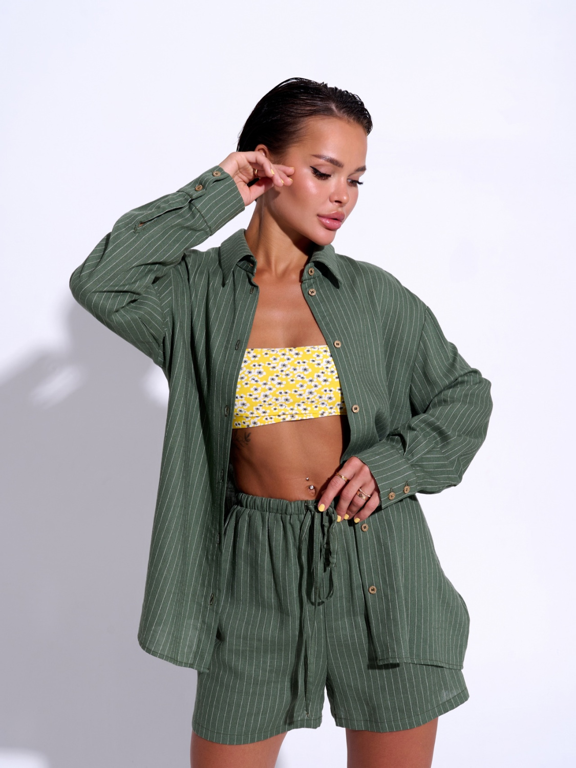 Пляжный костюм рубашка и шорты из льна-вискозы Гибли, дышащий легкий материал, что безусловно делает изделия из этой ткани еще более привлекательными.