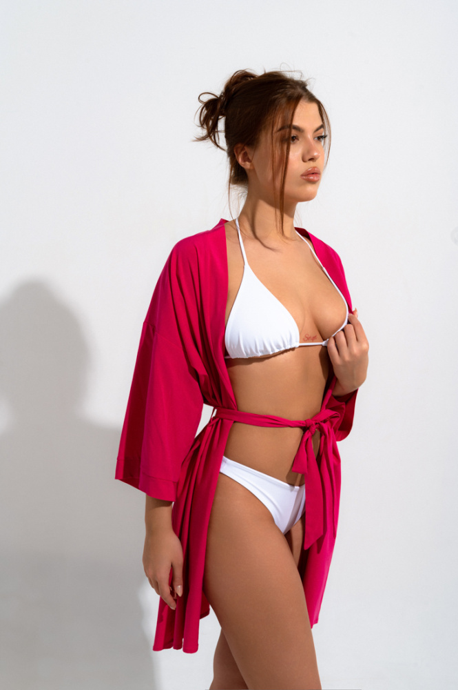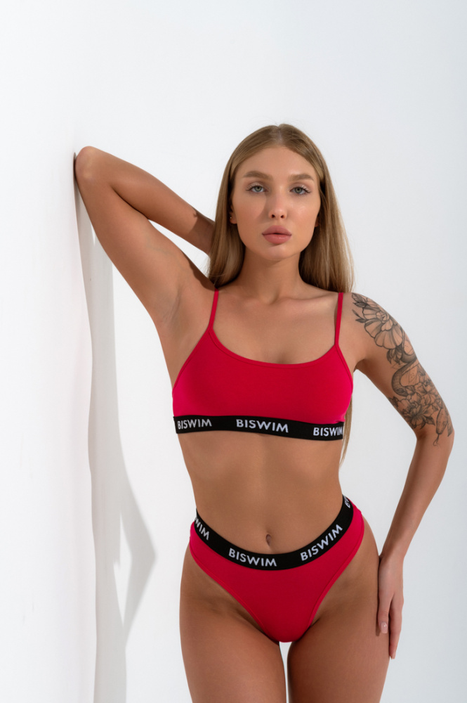Топ Айза, на тонких бретельках х/б с резинкой BISWIM, фуксия