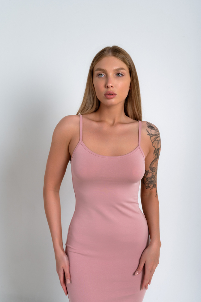 Платье Лейла силуэтное из хлопка, пыльная роза