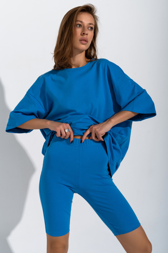 Футболка свободного кроя Шейла из хлопка, лазурь