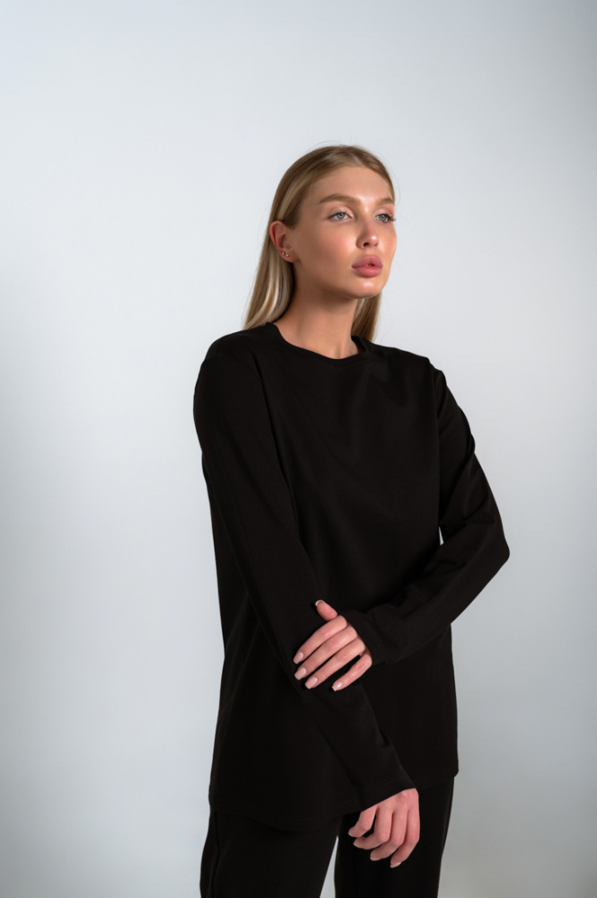 Лонгслив Виктория с мужского плеча из хлопка, черный