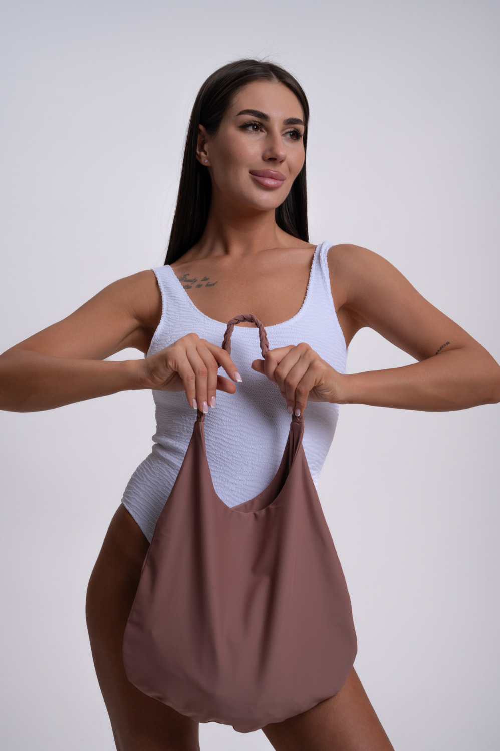 Купальник Джанин, слитный классический жатка, белый